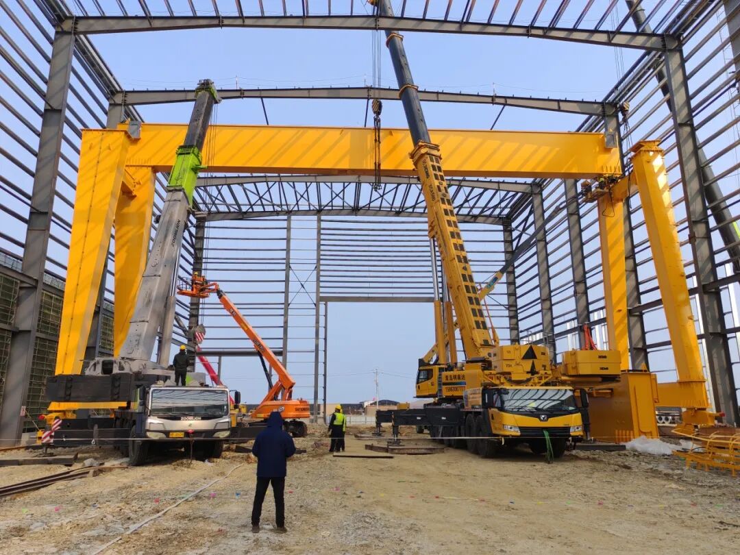 近日,奥力通起重机为东方风电(青岛)海上风电产业基地项目提供的400 吨龙门起重机成功交付,以专业起重装备支撑大型海上风电装备高效生产。